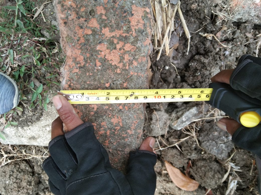 bata berukuran besar terlihat cukup banyak di sela sela rekahan tanah.